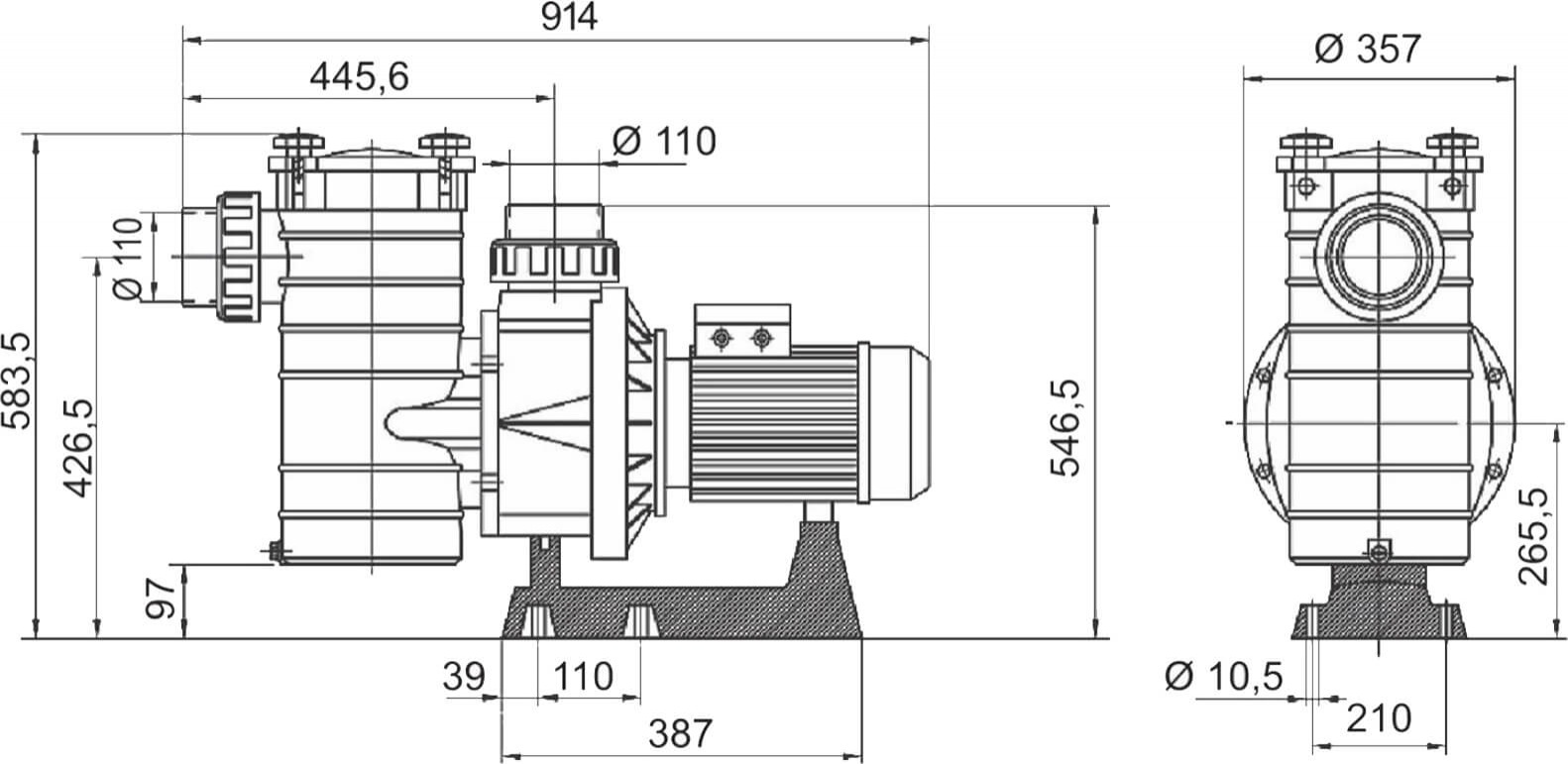Brand: Aqua Industrial Group,Flow rate, m3/h: 22,Valve type: side mounted Category: Hayward KPA 750 122 m3/h pump for the swimming pool, 7.5 HP