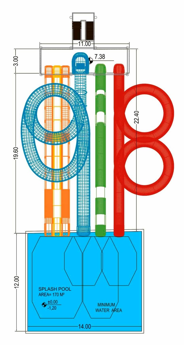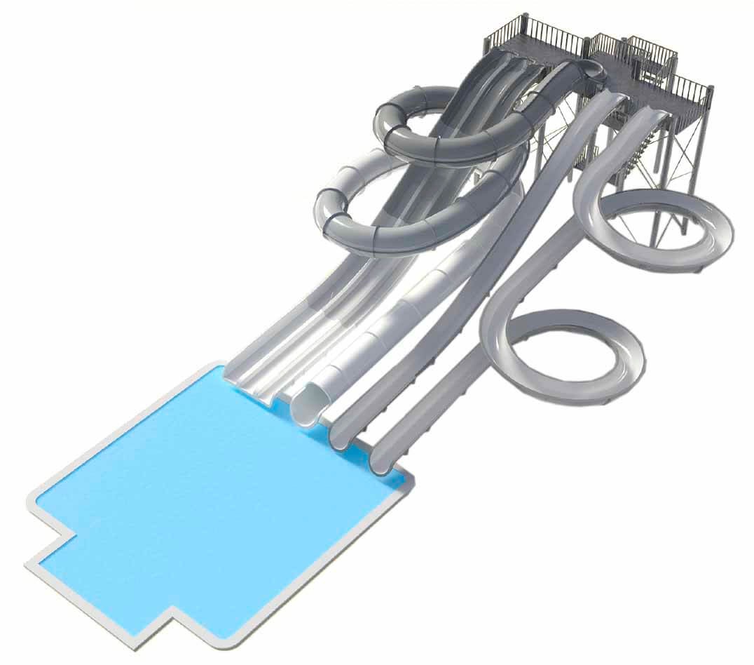 If it is not available to build it, for example, the area doesn’t have enough space or no reason to do it, for example, if it is just 1 slide, we use dry finish. It is like additional flumes of the water slide, there are swimmers stops.