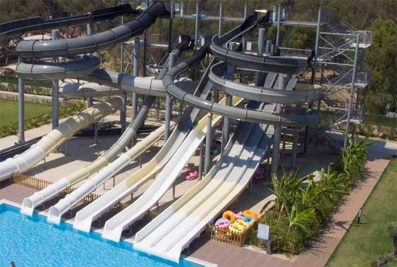 Hotels often choose a complex of slides with one start grounding, but with different heights, in order to reach a large audience.