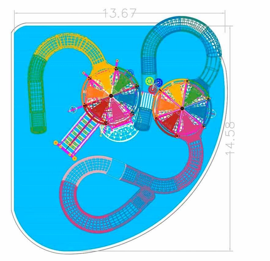 • Length of slide (one - Aquatube)- 11.03 mm; Slope - 10-15%; Depth - 820 mm; Width - 820 mm; Height of start - 2.1 m