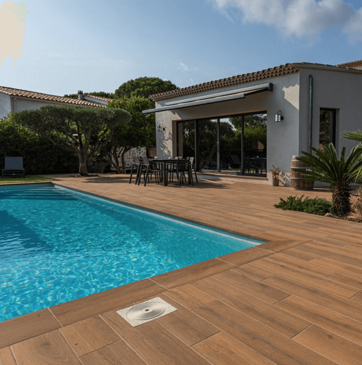 High-end porcelain tiles in the Alma collection have finishes inspired by the beauty of real wood. Even the smallest details on the surface seem lifelike. An excellent tile for outdoor recreation areas like pools. Rosa Gres Alma Honey is a wood-textured porcelain stoneware tile that is a perfect choice for anyone looking to add a touch of elegance to their swimming pool area. The tile's wood texture brings a natural and organic feel, while the porcelain stoneware material provides durability, slip-resistance, and low maintenance. The wood-textured design of Rosa Gres Alma Honey tile is an exceptional feature that creates a unique and warm atmosphere in your pool area. The texture of the tiles mimics the look and feel of real wood, without the maintenance or durability concerns. The natural and earthy look of the tile creates an inviting ambiance around the pool, making it a great place to relax and unwind. The Alma Honey wood-textured tile is available in different sizes and shades, making it customizable to any pool design or personal preference. The tile is versatile and can be used for pool decks, walkways, or poolside walls. The warm and inviting look of the tile creates a cozy and relaxing atmosphere, making it perfect for pool areas and outdoor living spaces.