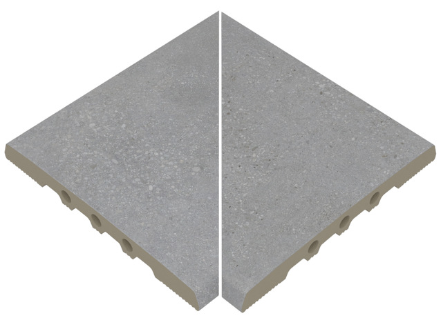 Brand: Cepex Category: Rosa Gres Iconic Grey 245 EF porcelain stoneware corners for swimming pool, 26,6 x 26,6 x 2.2 cm, anti-slip