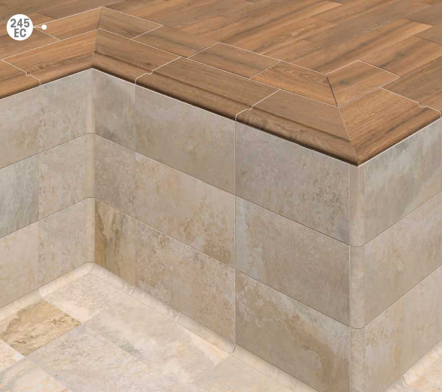 This 245 EC staircase piece can be utilized both inside and outside as a corner or end of a stair step, a window sill, or a corner of a terrace or balcony. Additionally, it is utilized within the pool for the inner corner of the seat and the inner corner of the step.