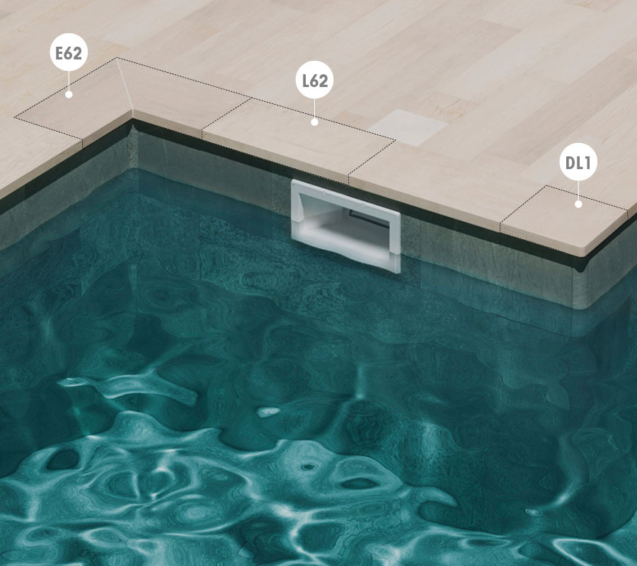 Brand: AstralPool,Type: Ladder,Stainless steel: 316L Category: Rosa Gres Iconic White DL1 porcelain stoneware edge for swimming pool, 31,7 x 31,7 x 3.8 cm, anti-slip