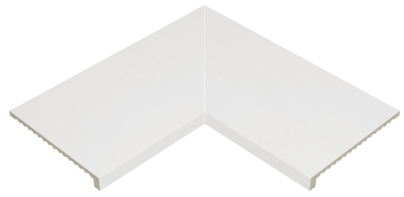 The E62 staircase piece can be utilized both inside and outside as a corner or end of a stair step, a window sill, or a corner of a terrace or balcony. Additionally, it is utilized within the pool for the inner corner of the seat and the inner corner of the step.