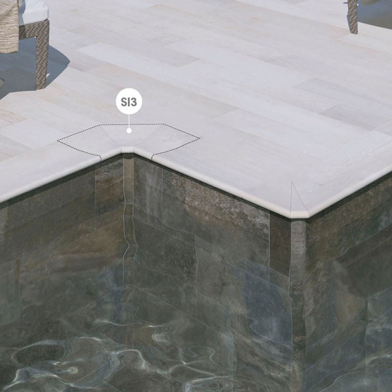 Rosa Gres Pietro White 665 porcelain stoneware edge for swimming pool, 62,6 x 62,6 x 2,6 cm, anti-slip Rosa Gres Pietro White 665 porcelain stoneware edge for swimming pool, 62,6 x 62,6 x 2,6 cm, anti-slip