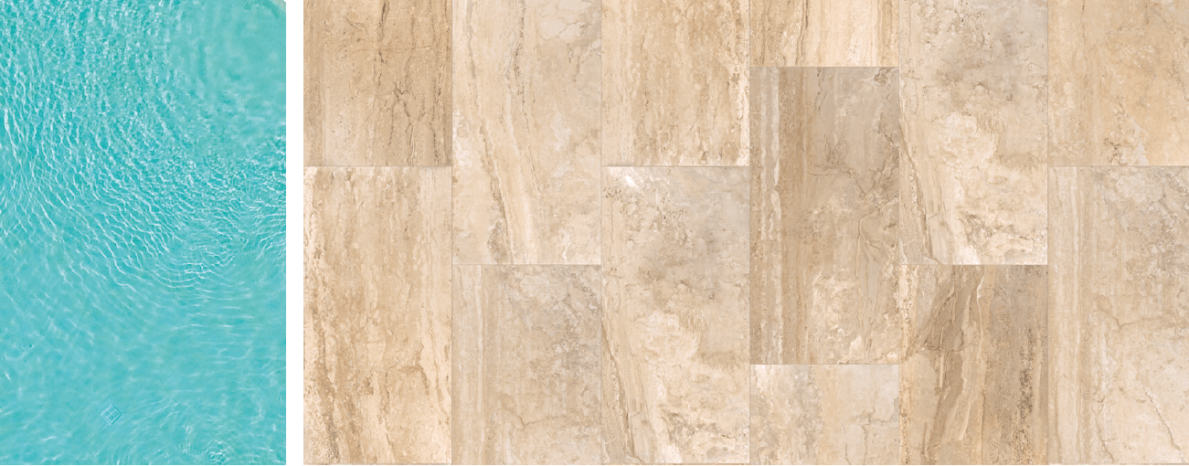 With its sandy beige color, it creates a warm and inviting atmosphere that's perfect for outdoor spaces. The tile's non-slip surface provides safety and durability, making it an ideal choice for pool decks, patios, and walkways. The Mythos Dune porcelain tile is manufactured with the latest technology and highest-quality materials, ensuring long-lasting performance and easy maintenance. Its smooth finish allows for easy cleaning and stain resistance, making it ideal for high-traffic areas. The tile's textured surface gives the impression of sand dunes, creating a unique and eye-catching visual effect. Its earthy tone and subtle variation in color add depth and interest to any pool area. The Mythos Dune porcelain tile is perfect for those looking to create a natural and organic feel to their outdoor living space. The anti-slip feature on the tile gives a firm grip for the pool users, making it more safe and reliable with elegance.