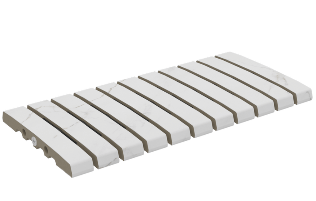 Rosa Gres' Mythos Selene 245 FL curved porcelain overflow grill is a beautiful and functional choice for those seeking a unique and high-quality option for their swimming pool. This curved overflow grill is specifically designed to provide both an elegant aesthetic and superior functionality for overflow pools. A unique and innovative option for those seeking a high-quality overflow grill for their swimming pool. This curved grill is specifically designed to provide a seamless and visually stunning transition between the pool and the surrounding area.