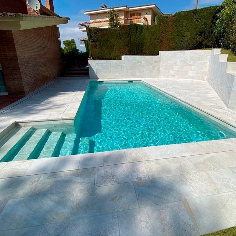 • Pietro white gives the pool water a radiant, crystalline blue color.