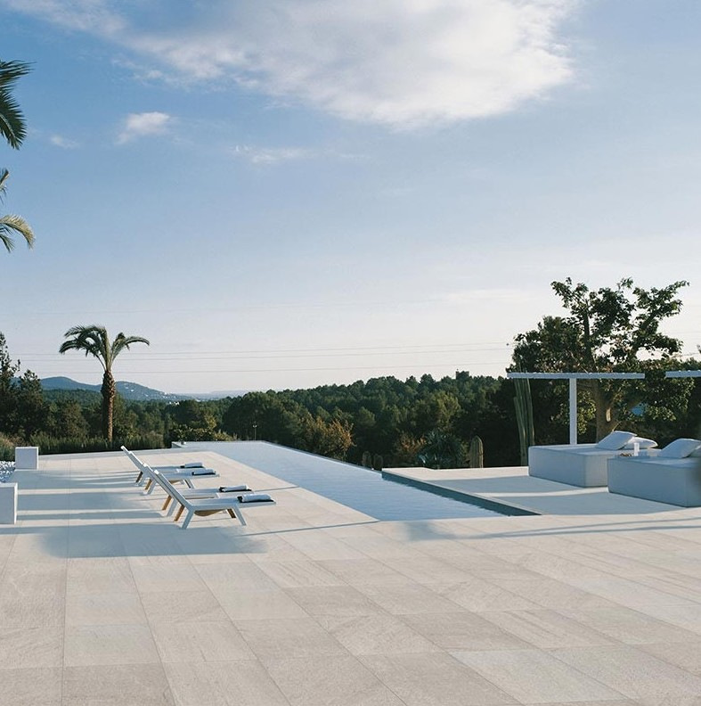 Rosa Gres Mistery White 665 porcelain stoneware edge for swimming pool, 62,6 x 62,6 x 2,6 cm, anti-slip Rosa Gres Mistery White 665 porcelain stoneware edge for swimming pool, 62,6 x 62,6 x 2,6 cm, anti-slip
