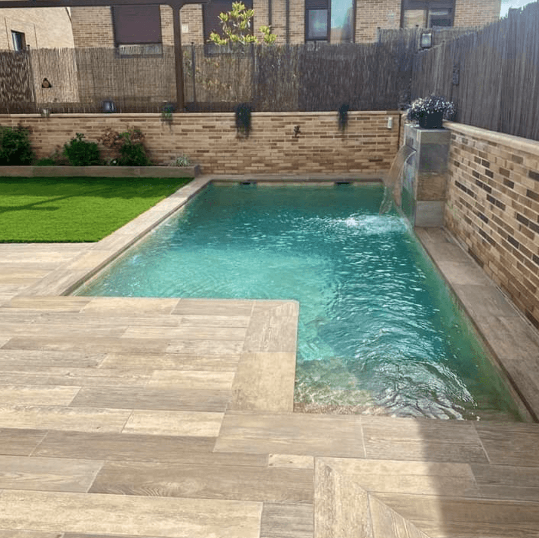Acclaimed to improve the beauty of your pool with a wide range of varieties of color and design.  Its non-slip surface ensures that swimmers can move around the pool area safely, reducing the risk of injury and providing peace of mind for pool owners. The edge also offers superior water management capabilities. Its overflow feature allows for easy water drainage, preventing any water buildup on the pool deck and keeping it clean and safe for swimmers. This feature also helps to circulate the pool water, ensuring that it remains crystal clear and free of debris. The design of this corner piece is also noteworthy, featuring a sleek and modern look with a neutral color palette that can complement a variety of pool designs and aesthetics.In conclusion, Rosa Gres Stela Golden wood-textured porcelain stoneware tile is a perfect choice for those who want to create a warm and natural ambiance in their pool area. The tile's wood texture mimics the look and feel of real wood, while the porcelain stoneware material provides durability, slip-resistance, and low maintenance. The eco-friendliness of the tile, combined with its versatility and ease of installation, makes it a great option for pool decks, walkways, or poolside walls. With its natural and inviting look, Rosa Gres Stela Golden tile is sure to create a relaxing and comfortable atmosphere around your pool area.