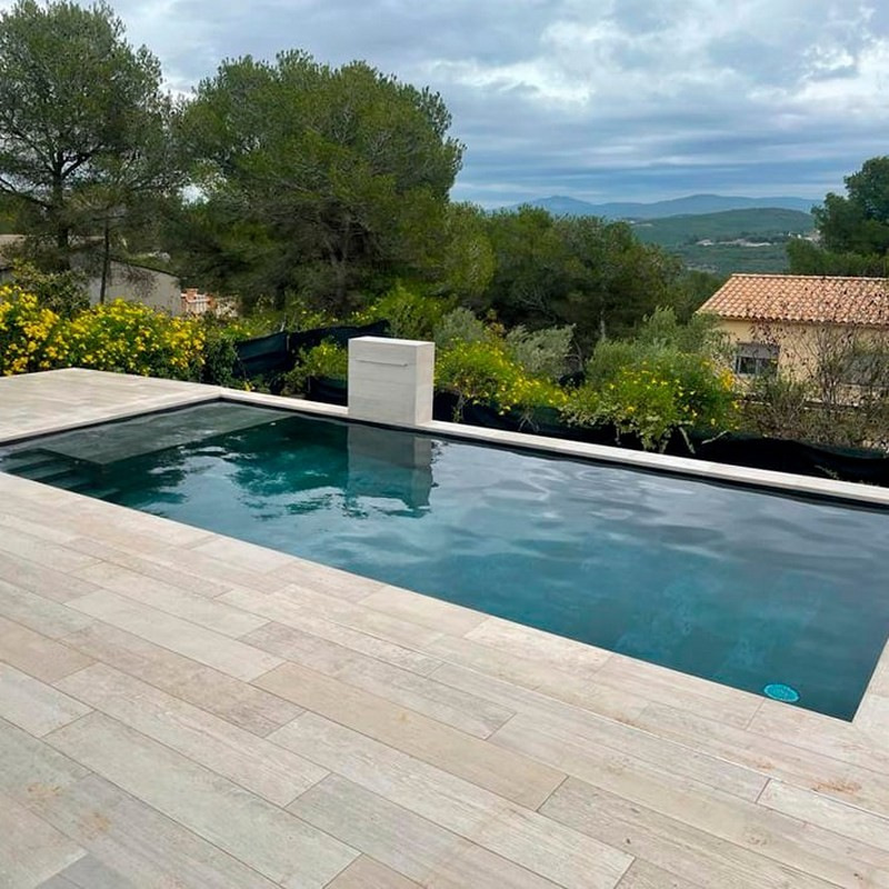 Rosa Gres Pietro White 665 porcelain stoneware edge for swimming pool, 62,6 x 62,6 x 2,6 cm, anti-slip Rosa Gres Pietro White 665 porcelain stoneware edge for swimming pool, 62,6 x 62,6 x 2,6 cm, anti-slip