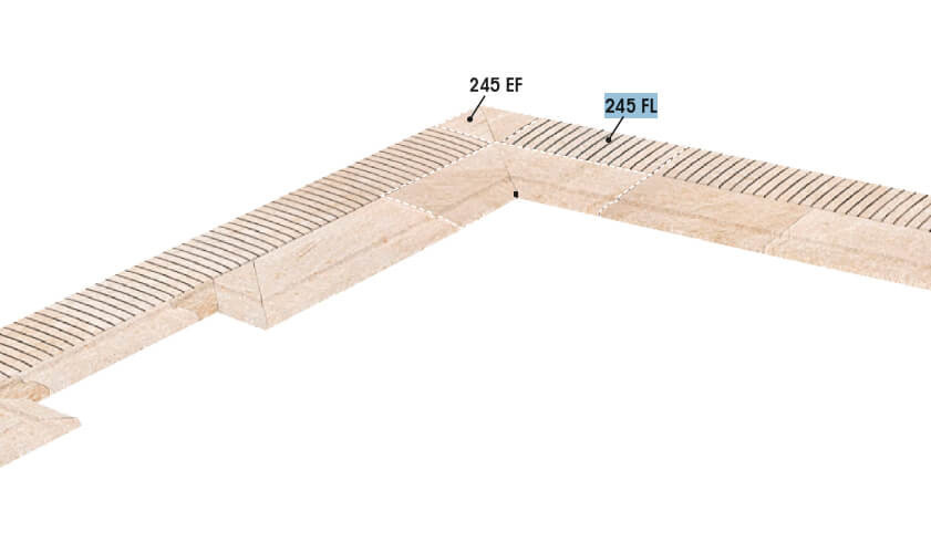 This customizable corner grill is made of non-slip porcelain stoneware for the pool's collecting channel. It is ideal for pools with regular shapes, whether they are small or huge.