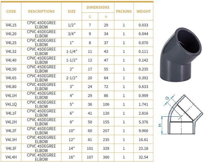 Brand: Atecpool,Mounting: Deck Category: Sekisui C-PVC elbow 45 degree 1/2”