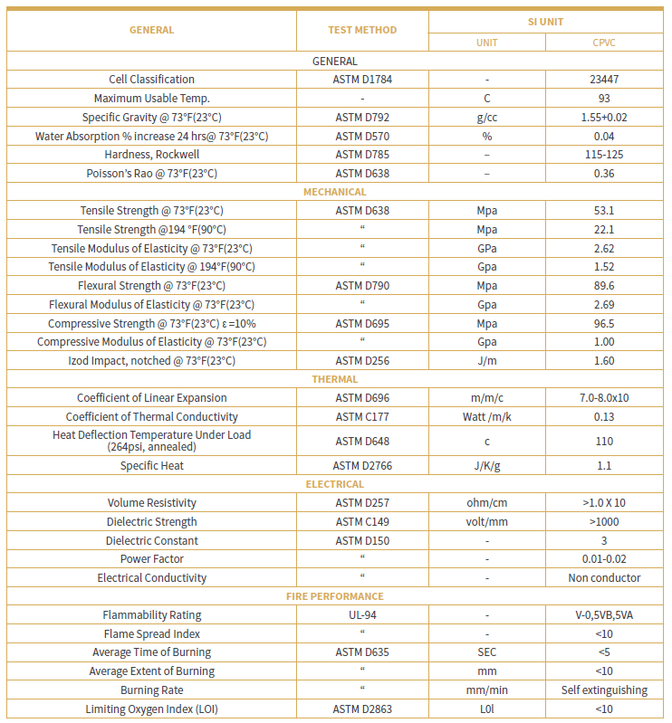 CPVC polymer is more chlorinated to PVC polymer. This additional chloride is responsible for the high temperature resistance of the material and other properties that are precious to industrial plumbing.