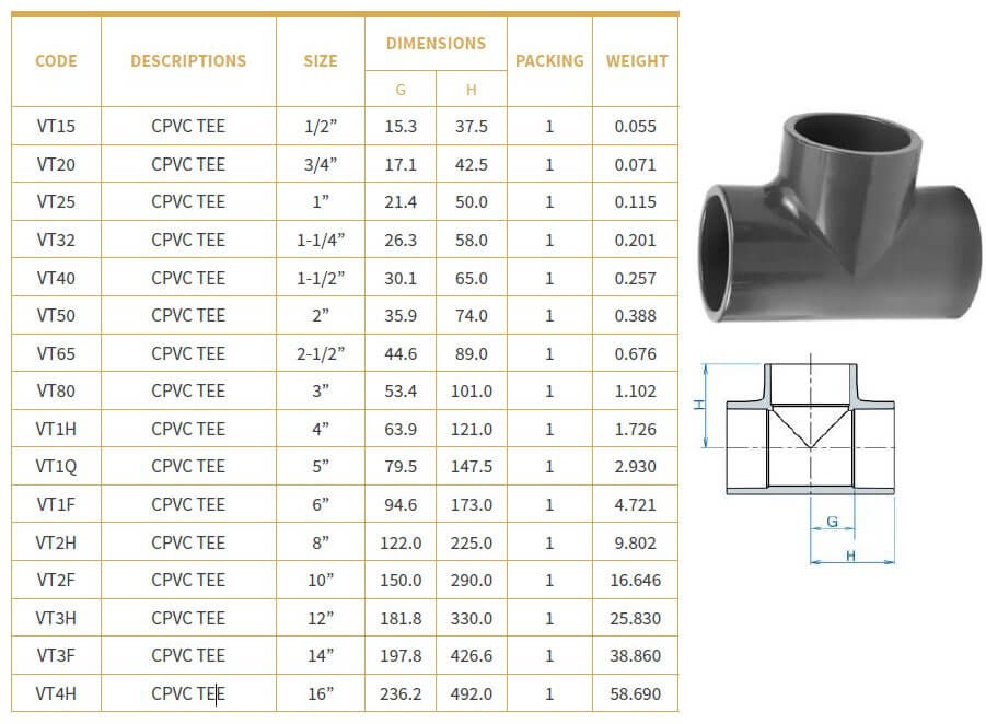CPVC tee has various unique characteristics - high chemical strength, convenient setting up and an acceptable price, which may result in a decrease in the total construction cost.