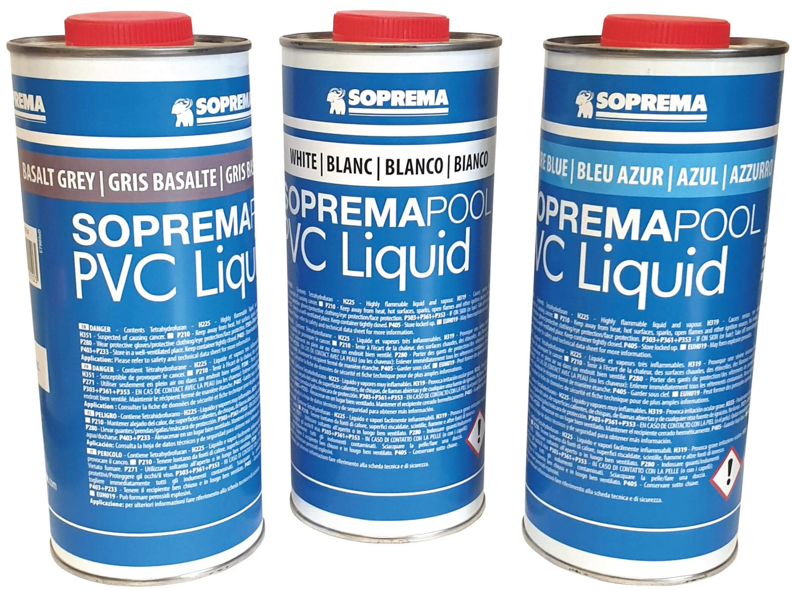 - Soprema PVC Liquid possesses an exceptional sealing ability for PVC membranes, owing to its formulation of polyvinylchloride (PVC) that is dissolved in tetrahydrofuran (THF).
