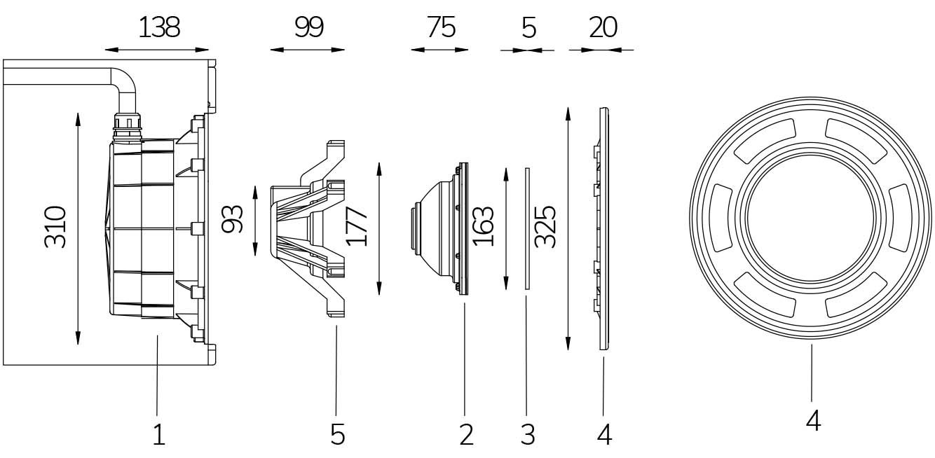 Astralpool Circular fitting  light for fountains  Ø 200 mm, 16 W, 1 Astralpool Circular fitting light for fountains Ø 200 mm, 16 W, 1" Fitting
