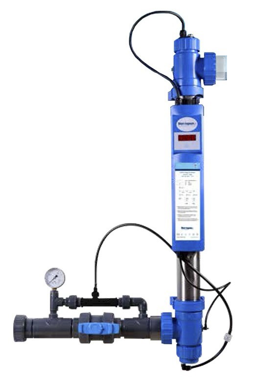 Compact ozone sanitizer by VGE is designed as effective defense against harmfull bacteria in a private swimming pool.