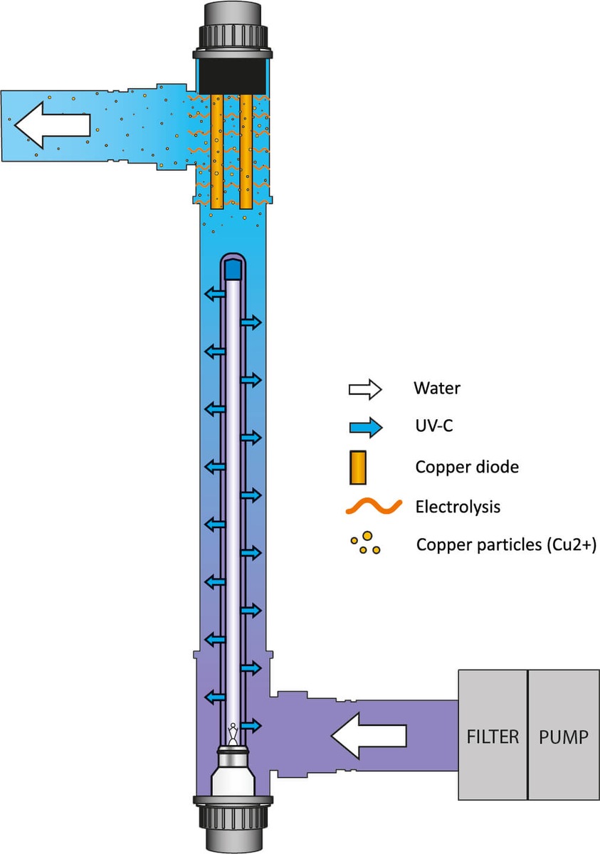 These positively charged copper ions (Cu2+) destroy the cell walls of bacteria, viruses and other lower organisms. As a result, these organisms lose their ability to nourish themselves and, consequently, to reproduce.