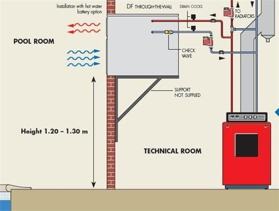 Brand: Atecpool,Color: RGB,Material: Stainless steel,Power, W: 1x3 Category: Zodiac DF 405T through the wall dehumidifier with hot water coil option for pool, 5 l/h, 1,300 m3h