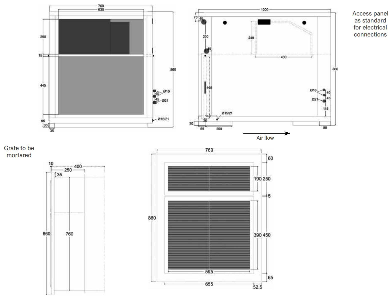 • Condensation evacuation: PVC 1/2 union, Ø 32, glued