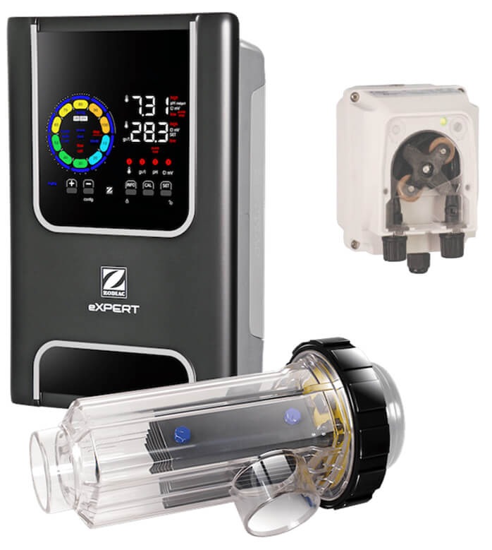 With a variety of choices for treating different pool volumes, the Zodiac eXPERT salt electrolyzer offers adaptability in salt water treatment. It offers complete water treatment capabilities, including pH modulation and automatic chlorination control through water balance management. It is quick to set up and has an easily readable display.