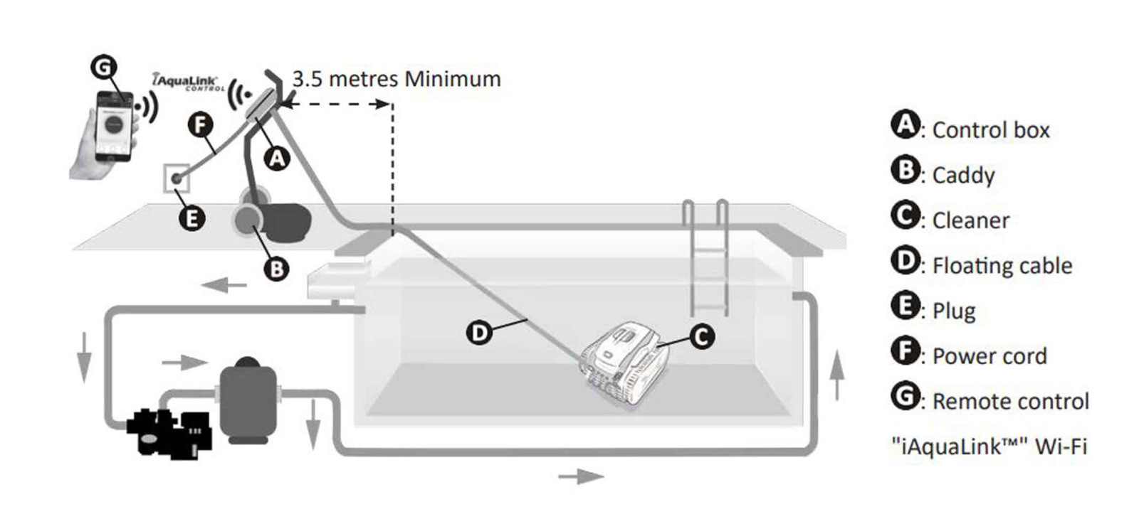 Package inclusion: Trolley, control box, stainless steel canister 150µ, Ultra-Fine Filter canister 60µ, contact brushes, free app