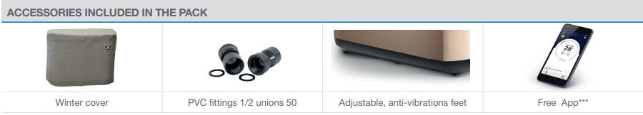 Heat pumps of the Z400 iQ series from Zodiac are energy efficient. They feature an elegant design. Low noise devices. The client is given the opportunity to control the device via Wi-Fi. When you are not at home, you can regulate and control the operation of the heat pump using the app.